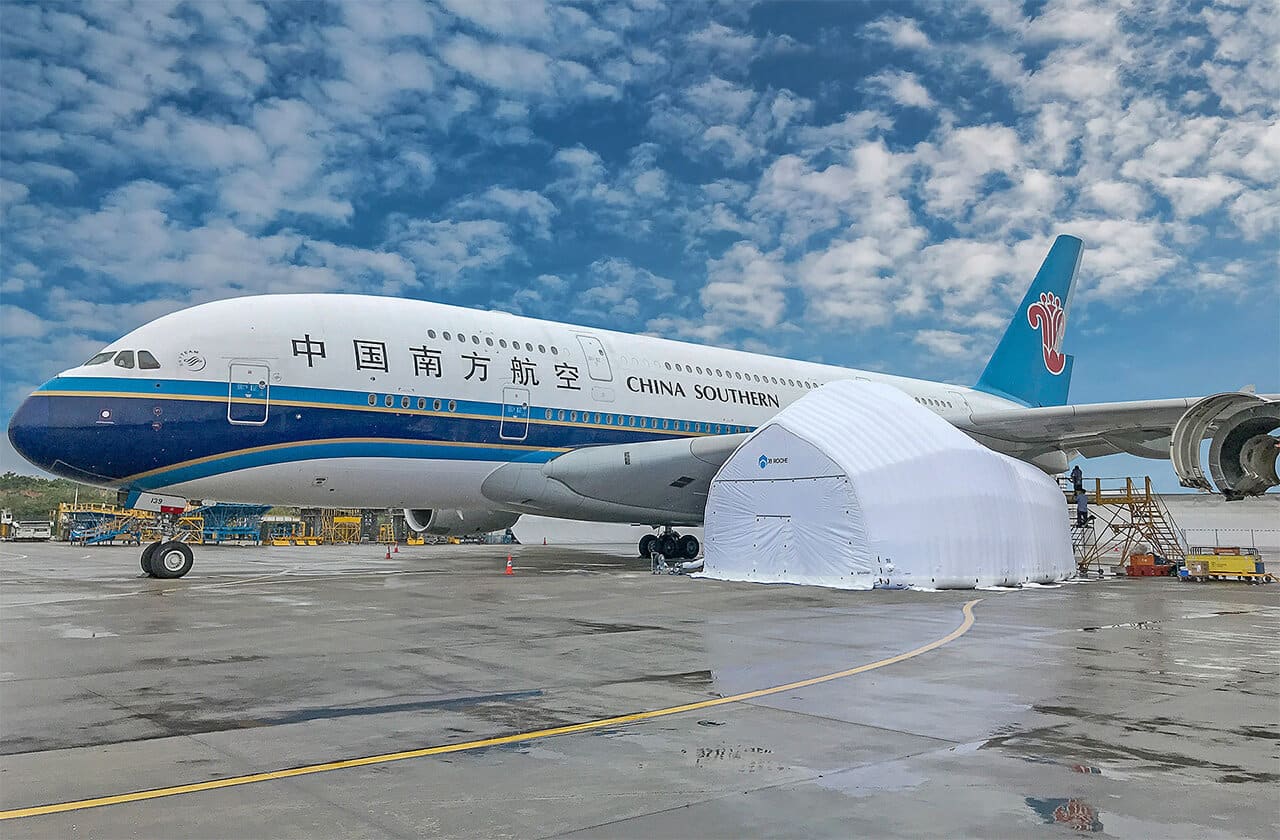 - The IglooMX® is constructed to encapsulate and seal the work area, providing a precise fit for the aircraft.